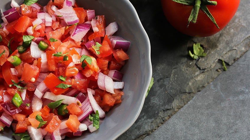 Lastly, we offer something with a bit of a kick – tomato salsa! Our healthy tomato salsa recipe is easy to make and adds zing to your corn chips, tortillas, or tacos.