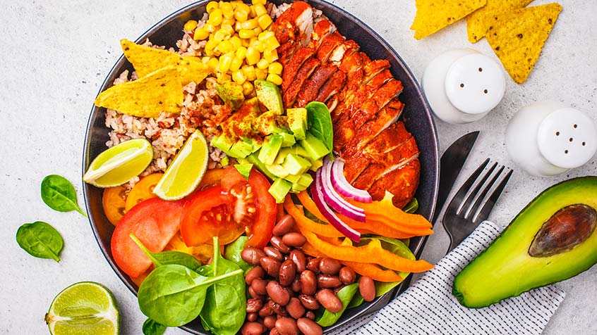Burritos are beautiful things, especially when they’re in bowls! This recipe is particularly tasty, combining juicy grilled chicken breast and gorgeous spices. You’ll be having a Mexican fiesta in no time!