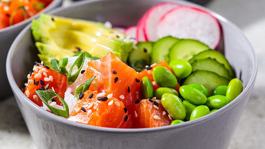 If you have fallen in love with poke bowls (pronounced: po-kay), you’ll love this recipe! Poke bowls are a great way to combine healthy ingredients into one delicious meal. We’ve opted to include salmon as our main source of protein – as it’s well known to be a mood-boosting superfood.