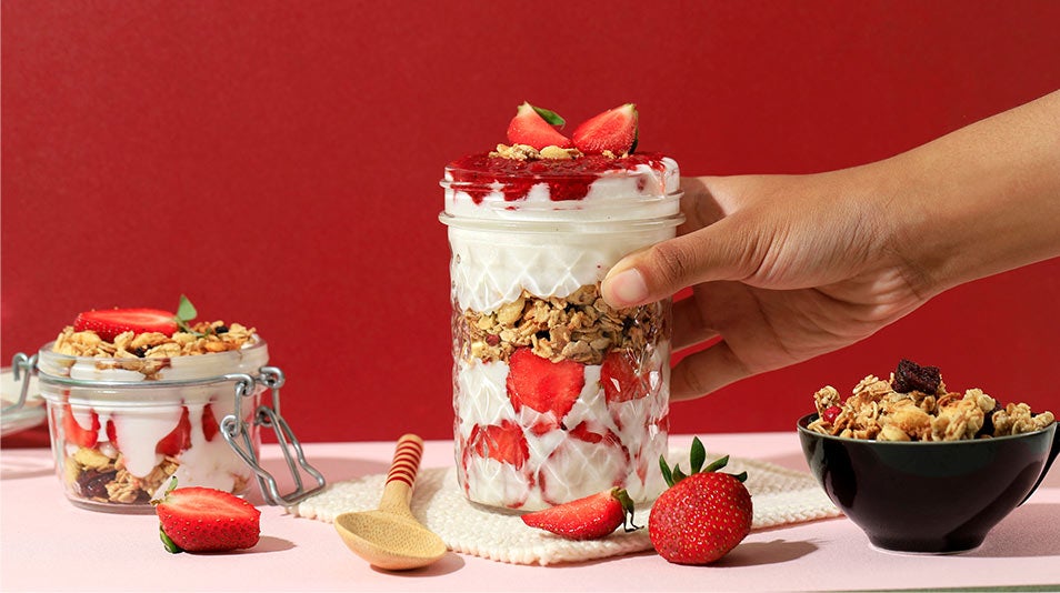 Packed with protein and probiotics, Greek yogurt parfaits are quick; they’re great for making multiple portions of cheap healthy protein meals.