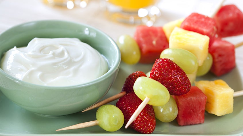 Dipping skewered fruit into yoghurt and freezing it isn’t just delicious, it’s also a perfect activity for kids during the school holidays!