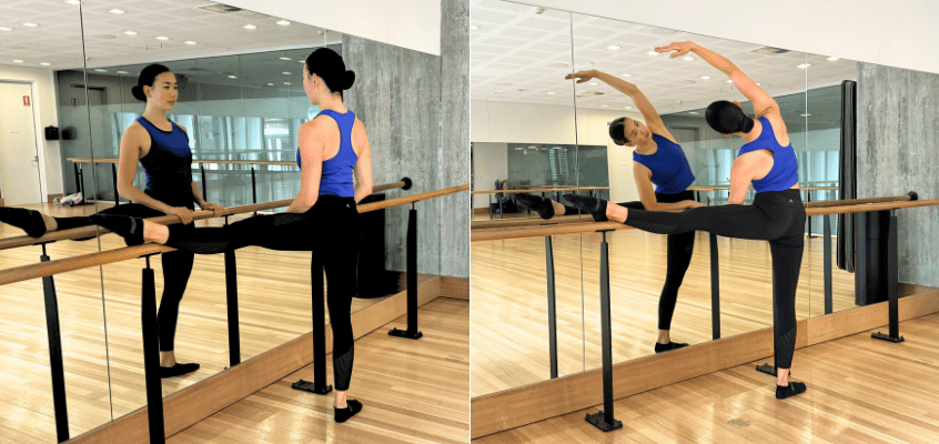 - Using a table, bench, or in my situation, a barre - place one foot up.