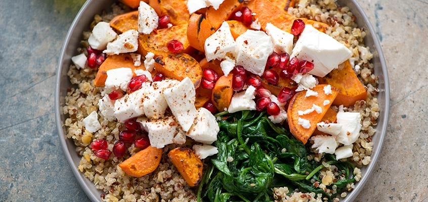 A tasty salad containing too many superfoods to count. With sweet potato, cinnamon, olive oil, quinoa, avocado, sprouts and pomegranate, this superfood salad is bursting with nutrients and flavour. It serves 6 and is hearty enough to take centre stage on any outdoor table.